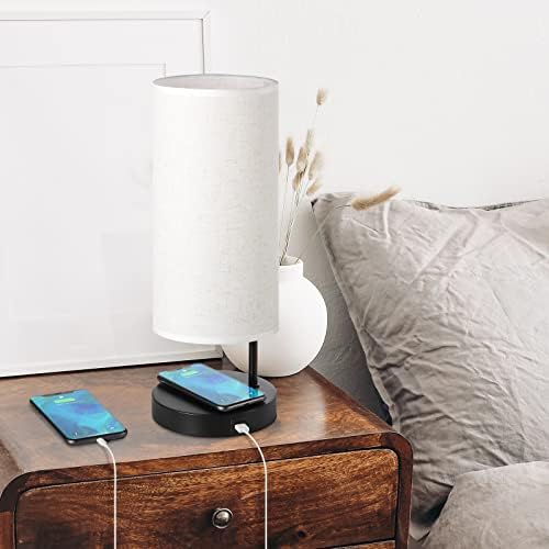 Wireless Charging Table Lamps Set of 2, Bedside Lamps with USB Charging Port, Nightstand Lamps with Linen Fabric Shade for Bedroom Office Living Room