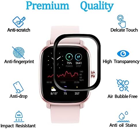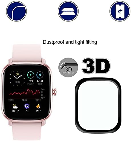 Protector de Pantalla para Amazfit GTS 2 Mini, Fácil de Instalar [Paquete de 3] Protector Curvado de Borde 3D Anti-Arañazos, Anti-Huellas HD Ultra Resistente a Roturas Flexible Compatible con Amazfit GTS 2 Mini