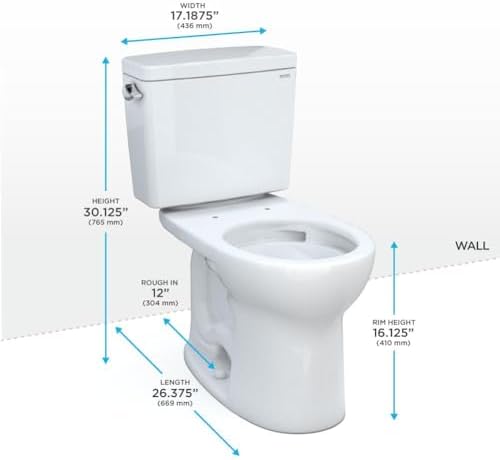 - STYLISH AND MODERN DESIGN - Update your oasis with this stylish design that couples well with any bathroom décor. The round bowl helps to save space in your bathroom. The toilet fits into 12 inch rough-in installations and has a left-hand trip lever.