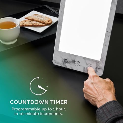 Verilux HappyLight Luxe - Light Therapy Lamp with 10,000 Lux, UV-Free, LED Bright White Light with Adjustable Brightness, Color, Countdown Timer, & Stand - Boost Mood, Sleep, Focus (White Marble)