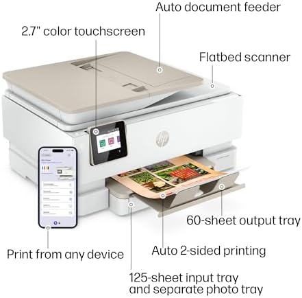Impresora de inyección de tinta a color inalámbrica HP ENVY Inspire 7955e, imprime, escanea, copia, fácil de configurar, impresión móvil, ideal para el hogar, tinta instantánea con HP+, blanca
