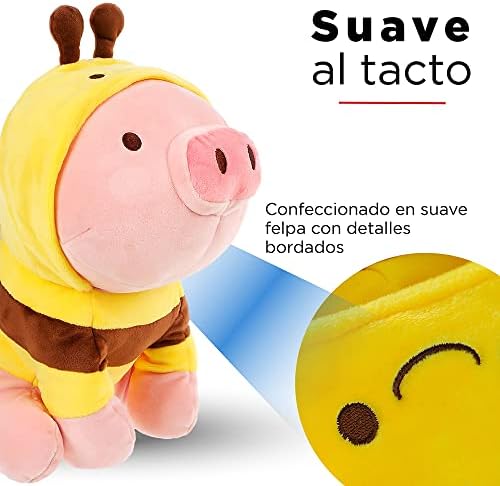 - Bonito diseño: con una bonita expresión facial y una sudadera con capucha de abeja, este cochinillo es un peluche adorable y de aspecto feliz.