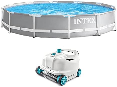 Intex 26710EH 12ft x 30in Prism Frame Outdoor Above Ground Round Swimming Pool & Robot Vacuum Cleaner Fits up to 6 People (Filter Pump Not Included)