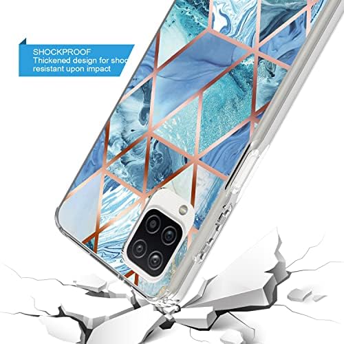 for Samsung Galaxy A42 5G /A42 CASE,W/HD Screen Protector(2 Pack), Slim Anti-Scratch Hard PC TPU Shockproof Cute Sparkly Bling Girls Women Protective Cover White Blue Marble MUOSHA ROSE GOLD