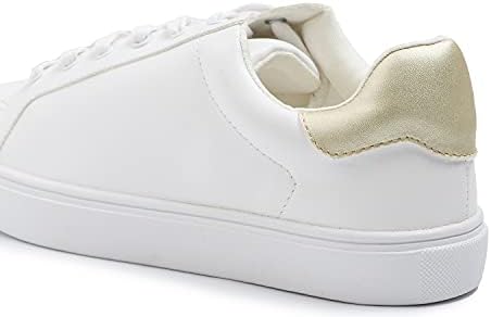FEVERSOLE Women's Featured PU Leather Colorful Lace Up Sneaker White Gold Patch Size 9 M US