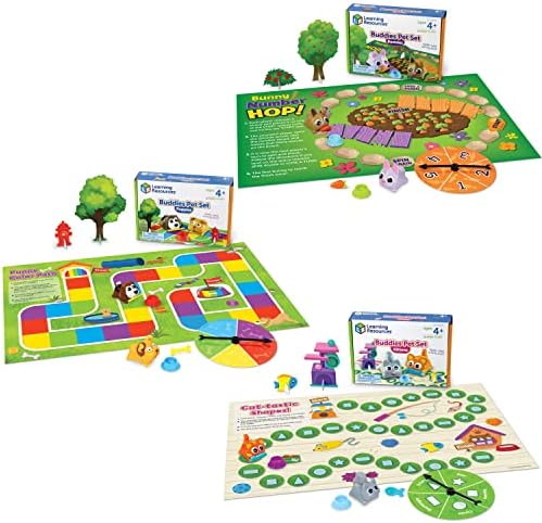 Recursos de Aprendizaje Buddies Set de Mascotas 3 Juegos en 1 - 27 Piezas, Juguetes de Aprendizaje Preescolar, Edades 4+, Reconocimiento de Colores Números Formas, Juegos de Aprendizaje para Niños Pequeños