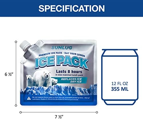SUNLUG Cooler Ice Packs ——A substitute for traditional ice cubes & regular water and has a Colder & Faster & Longer cooling performance. Key Features & Specs Each ice pack size - 9.75 x 9.75 x 1 inches Included in a set - three corks & one funnel Each pack need fill in 28 ounces(3 1/2 cups of 8oz)of water Save more space for your coolers & Extended the food and drinks cooling time. Add Water Once & Reusable The inside of the ice pack is filled with a proprietary cooling gel mixture, just add water at home, shake and seal, and then turn it into a solid block after freezing, which creates a reusable ice pack. Superior Cooling Performance SUNLUG ice packs start out at freezer temperature and gradually heat up. Throughout the melting process, ice packs maintain the advantage of a lower melting point than traditional ice cubes. When the ice starts to melt and warm in your cooler, ice packs still remain cold, even as they begin to thaw. REUSABLE Just add water once and return the ice packs to the freezer after using and they'll be ready for your next outing. Save your money spending on ice cubes. LONG LASTING COLD Colder & Faster & Longer Ice Packs, the best ice alternative. Keep your food and drink chilled longer. NON-TOXIC Feel safe using cool coolers and sending them with your kids. Keep your food or drinks cold for a long time. BPA FREE SUNLUG Ice Packs made of high-quality BPA-Free materials. Designed to keep cool without harming the environment, and promote sustainability.
