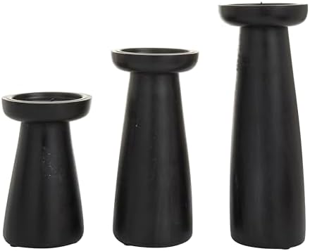 Deco 79 Mango Wood Decorative Candle Holder Pillar Candle Stand, Set of 3 Candlestick Holder 10", 6", 8" H, Black