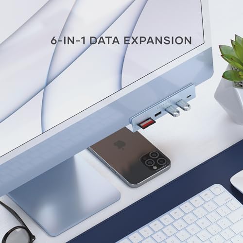 Satechi Clamp Hub USB-C – Puerto de datos USB-C, Puertos de datos USB-A 3.0, Lector de tarjeta Micro/SD – para Apple Studio Display y iMac de 24 pulgadas M1 2021. No compatible con modelos iMac 2020 y anteriores (Azul)