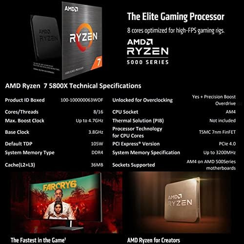 • Procesador de CPU AMD Ryzen 7 5800X, 8 núcleos y 16 hilos de procesamiento, refrigerador no incluido, puede ofrecer un rendimiento de élite de más de 100 FPS, soporte de SO: Windows 10 Edición de 64 bits