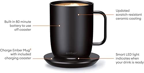 Ember Temperature Control Smart Mug 2, 14 oz, Black, 80 min. Battery Life - App Controlled Heated Coffee Mug - Improved Design (CM191400US) (Renewed)