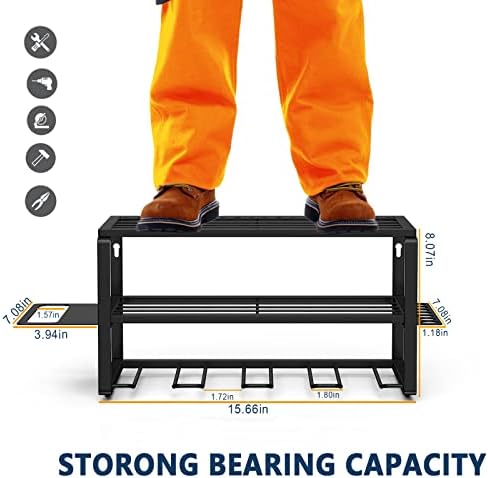 Power Tool Organizer Wall Mount, 3 Layers Storage Rack with 4 Cordless Drill Holders, Garage organization and Storage, Heavy Duty Battery Holder, Iron 16in Tool shelf