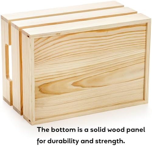 - Widely Application: These wood crates for display can be used around the house to store and organize potted plants, crafts, toys, books, newspapers, magazines and music records. Place the boxes in the bathroom to store toilet rolls, towels, shower and bath products. Use them in the kitchen to store bread, canned goods, fruits and vegetables. The unfinished surface also allows you to DIY and decorate the way you want.