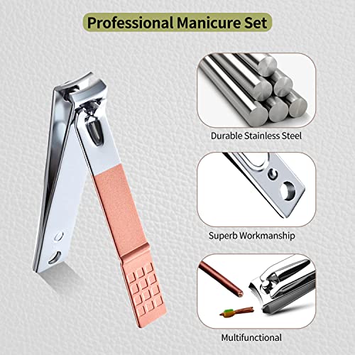 Manicure Set - Professional 12 in 1 Manicure Kit Pedicure Kit, Stainless Steel Nail Care Kit with Travel Case for Women- Pink
