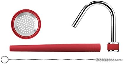 - Includes red silicone and stainless steel sieve gasket, stainless steel ventilation tube, red silicone tube, and cleaning brush