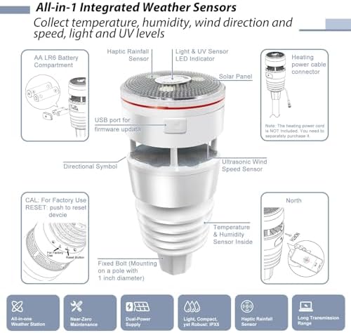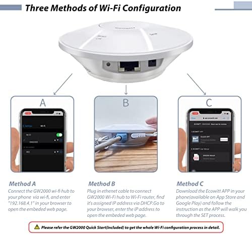 • 【Easy to Install & Configure Wi-Fi】: Just install the weather station on the mounting tube and base and see how stable the device stays. This stability is critically important for the accuracy of the sensors and the reported data. It is easy for you to complete the Wi-Fi configuration according to the including quick start. There are three Wi-Fi configuration methods available.