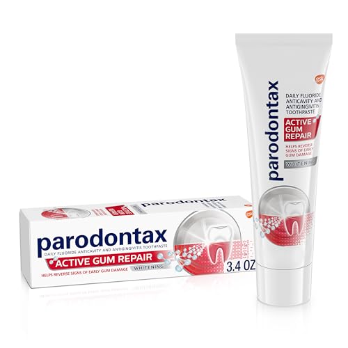 - One 3.4 oz tube of Parodontax Active Gum Repair Whitening Toothpaste, an anticavity and antigingivitis gum toothpaste