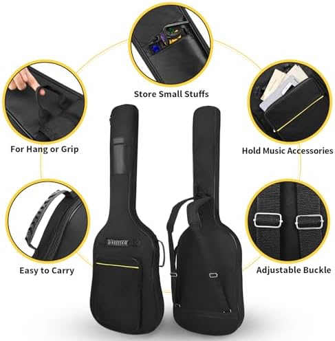 - Side grip handle, rubber front handle and dual adjustable padded shoulder straps with back hanger loop, provide multiple convenient ways to get the guitar from place to place. As electric bass guitar carrying case or bass guitar backpack to transport your bass back and forth to gigs, travel, home, church, lessons, gigs, concert, music school, rehearsals.