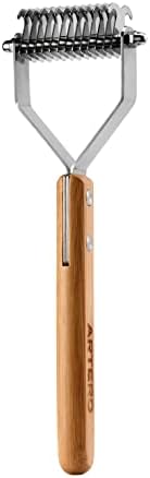 Oval bamboo handle with metal fixing to the head to resist great efforts. It can be used to drag shedding hair in short-haired, double-coated dogs, cut knots and tangles, and even assist in stripping by removing undercoats and plucking hard hair. The Artero Supercoat M Nature Collection has one side with 7 blades to allow getting into very dense coats, large tangles, shedding accumulations and a second side with 13 blades for medium coats, small tangles and knots and finishes. The Artero Supercoat L Nature Collection has one side with 11 blades to allow entry into very dense coats, large tangles, shedding accumulations and a second side with 21 blades for medium coats, small tangles and knots and finishes.