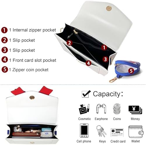 Sunwel Fashion Kawaii Anime Cosplay Purse with Bow Stone Chain Shoulder Crossbody Bag (blue)