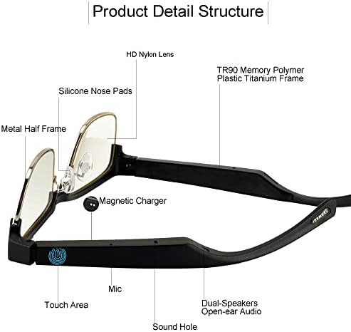 - 👓Open-Ear Sound Experience - Our Smart Glasses are designed with an open-ear speaker, let you say goodbye to the discomfort of wearing headphones for a long time, immersive sound to the space around your ears. Sound quality loud enough, enjoy you favorite music. Bass frame won't interfere with your open ears listening to everything around you.