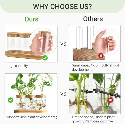 - Tabletop Propagation Vase: This stylish design plant propagation vase with lid wooden stand great for growing hydroponic plants. The glass bottle provides enough sapce for planting and growing plants, and the flowers bottle is transparent, making it easy to observe the absorption of plants under sunlight