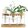 Dahey Plant Propagation Terrarium Desktop Glass Planter Station Water Planting Glass Vase with Lid and Wooden Stand for Propagating Hydroponic Plants Centerpiece Office Home Garden Decor, 3 Pcs