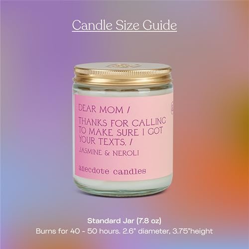 Anecdote Candles ‘Dear Mom’ Coconut Soy Wax Candle Jar | Premium Hand Poured & Long Burning | Jasmine & Neroli Scent | Phthalate-Free | Gifts for Mom - 7.8 Oz