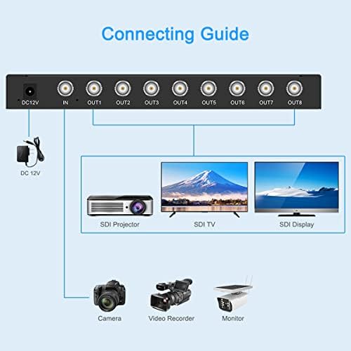 SDI Splitter 1x8 Supports SD-SDI, HD-SDI, 3G-SDI(1 Input and 8 outputs) SDI Video Splitter Box Distributor Amplifier for Video Monitoring System CCTV Security Camera