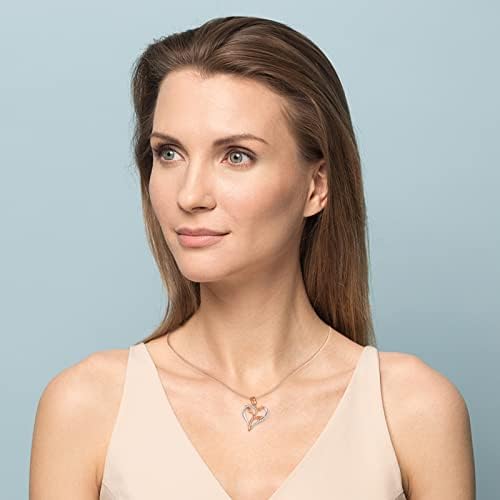 Valentines Gift Rose Necklace for Women Cubic Zirconia Love Heart Pendant Necklace, Silver & Rose Gold 2-Tone Rose Pendant with Jewelry Box Birthday Gifts for Her
