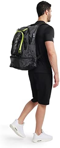 La súper elegante y práctica mochila ARENA Fastpack 3.0 está diseñada para nadadores, triatletas y amantes del deporte. Un gran compartimento trasero ofrece suficiente espacio de almacenamiento, incluso para equipo de entrenamiento grande como una tabla de patadeo. El espacioso compartimento inferior es ideal para ropa mojada o dos pares de zapatos. La mochila se puede colgar con el gancho de mosquetón y se puede usar como un armario. Se incluye una bolsa de natación separada para guardar tu ropa mojada. El panel trasero transpirable reforzado y las correas ergonómicas de hombro con sistema de correa de pecho proporcionan una excelente comodidad, incluso cuando la mochila está completamente cargada. El fondo reforzado protege tu equipo de los pisos mojados. Dimensiones: 21 x 11 x 14 pulgadas, capacidad de 40L.