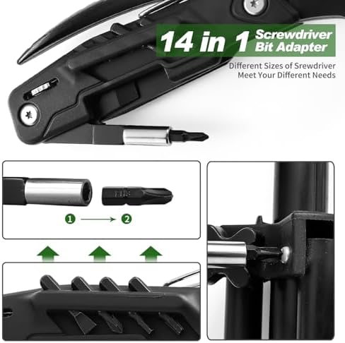 - 【Nueva Herramienta Martillo Mejorada 14 en 1】Añadimos un nuevo orificio para bits de destornillador en el martillo multiherramienta para reemplazar varios bits diferentes (con punta aplanada, en forma de cruz, hexagonal y en forma de estrella). La estructura de la hoja recta y la hoja de sierra también ha sido mejorada.