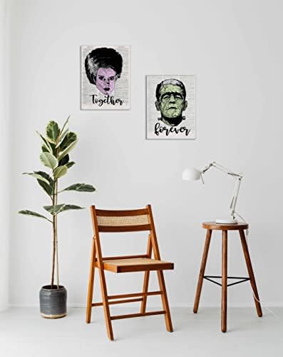Frankenstein Couple Wall Art Canvas 11 x 14 Inch Set of 2 Decor for Home Room Living Room Bedroom Porch,Monster and Bride Decor, Gift for Couple Horror Wedding Anniversary Wedding