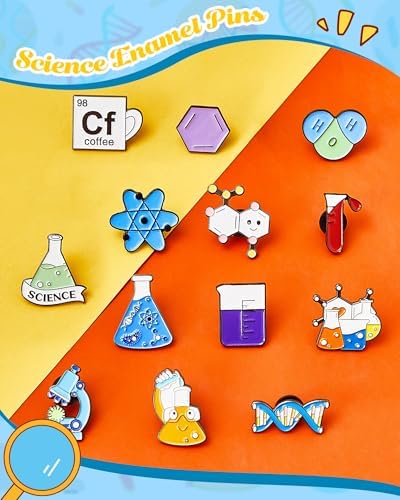 - Aplicaciones versátiles y prácticas: caracterizados por un bonito y clásico tema científico, estos alfileres esmaltados de laboratorio son muy adecuados para decorar ropa, sombreros, zapatos, bolsos, mochilas, bufandas, manualidades y más, combinan con tus disfraces de fiesta de temática científica, también son buenos regalos de recompensa para el estudio de temas científicos