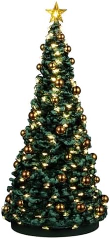 LEMAX-Christmas Village-Accessory: Jolly Christmas Tree The crowning glory of any Christmas decoration effort is always the tree, and they don’t get more glorious than this beautiful offering! Adorned with tasteful gold baubles and shining lights, the star at the top of the Jolly Christmas Tree is the cherry on the cake.