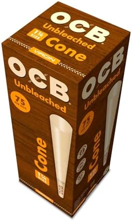 OCB Virgin Unbleached Pre-Rolled Rolling Paper Cones 1-1/4 (84mm) Size - 75 Cones
