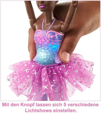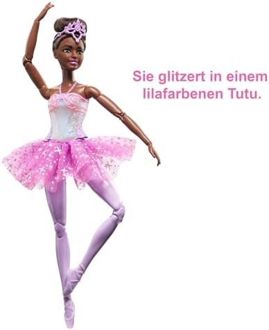 Barbie Dreamtopia Twinkle Lights Ballerina Doll with Brunette Hair & Light-Up Feature Wearing Removable Headband & Purple Tutu