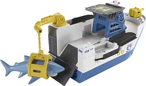 Product Details All aboard for high seas adventures with the Matchbox™ Rescue Response Team! There's a sneaky shark on the loose and he's snacking on Matchbox™ cars! Luckily this is no ordinary Shark Ship™it floats in water and rolls on land so kids can keep the adventures going from the tabletop to the tub! Send the squirting helicopter 'flying' to distract the shark then use the water cannon to blast the shark and free the cars from his chomping jaws. Once the cars have raced to freedom, scoop the shark onto the ship by lowering the crane arm, swinging him onto the deck and sail off to release him far, far away. Kids will love playing out the heroic adventures of rescuing their cars from the giant shark. Includes one large-scale rolling and floating ship with a swinging/lowering crane arm; one car-chomping shark; two water-safe cars; one helicopter that doubles as a squeegee toy; one water cannon that mounts to front of the ship and one floating raft that launches from the boat and carries one car. Ages 3 and older. Not for use with some Matchbox™ sets. Colors and decorations may vary. Mega-sized ship floats in water and rolls on land for double the fun! Kids will love rescuing their cars from the sneaky car-chomping shark. The play continues from the tabletop to the tub. Includes a crane arm, chomping shark, helicopter toy, water cannon and floating raft. Comes with two water-safe Matchbox™ cars. See More