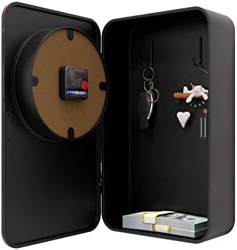 - RELOJ DE PARED PARA TELÉFONO ANTIGUO Y VINTAGE CON CAJA FUERTE OCULTA: su funda mide 16 pulgadas de alto x 12 pulgadas de ancho x 3.9 pulgadas de profundidad. La esfera del reloj mide 7 pulgadas de diámetro. No solo sirve como un hermoso reloj de pared decorativo, sino también como una caja fuerte única. Puede guardar joyas, dinero extra, tarjetas bancarias u otros objetos de valor pequeños en este reloj que funciona con pilas y caja fuerte. Detrás de este reloj diseñado para teléfono hay un compartimento secreto con 2 ganchos donde puedes esconder algunos objetos y colgar las llaves.