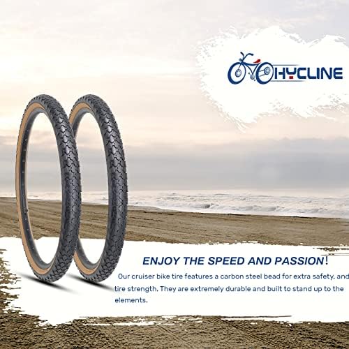 Hycline 2 Pack Bike Tire,26x2.125 Inch Folding Replacement Tire for Beach Cruiser Bicycle-Brown Pair (2 Tires)