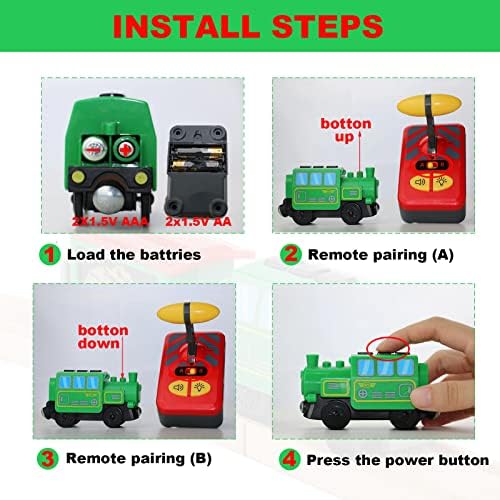 - Note---Batteries and track not included.Fit all major brands wooden track railway system.Remote pairing before using according to manual. Or the remote will not work.