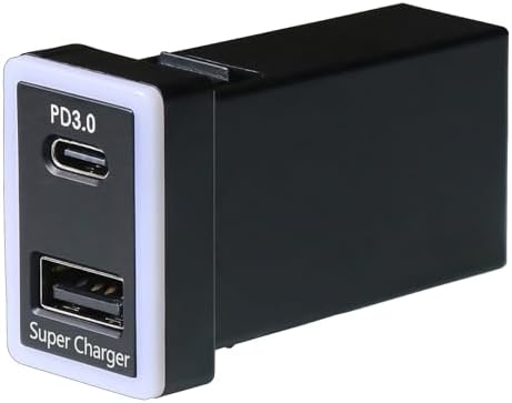 Qualcomm quick charge 3.0: Charges devices up to 80% in just 35 minutes, 4 times faster than conventional car chargers. Backward compatible with QC 1.0 and 2.0 Technology. Type C PD3.0 charging port, supporting Apple's latest fast charging protocol, can provide fast charging experience for Apple devices (need to use Apple's certified fast charging cable) Dual outputs: 60W dual outputs ensure the fastest charging speed for 2 smartphones, tablets, or QC compatible devices simultaneously, also charges non-Quick Charge devices at their normal speed. Fast & safe charging: Automatically adjust the charging current according to the connected devices and remaining capacity to obtain the fastest and safest charge for your device. Universal compatibility: Compatible with all USB powered devices including Quick Charge 1.0, 2.0 and 3.0, ensuring that even non-Quick Charge devices get the fastest charge possible, such as smartphones and tablets. smart charging technology: Overheating, overcharging, excessive current and short-circuit protection system, keeping you and your devices safe at anytime. Can fast charge mobile devices when the power is less than 5%, smooth output when the power exceeds 90%, effectively ensure the battery life of mobile devices. Operating voltage: 12V QC3.0 Output: 15V*2A / 20V*1.5A / 5V*3.5A PD3.0 Output: 15V*2A / 20V*1.5A / 5V*3.5A Suitable models: (Model data may have errors and omissions, we recommend measuring the size of the mounting hole before purchase) SEQUOIA 2008 -ON RAV4 2008 - 2016 TACOMA 2011 - ON 4Runner 2010 - ON COROLLA 2007-2017 COROLLA DE EINGE 2016-2017 COROLLA EX 2011-2014 FJCRUISER 2007-2013 LANDCRUISER 2010-2016 VIOS 2008-2016 PRIVS 2012-2016 LANDCRUISER 2003-2007,2010,2015 COASTER 2012-2016 PRADO120 2010-2016 YARIS 2009-2016 HIGHLANDER 2008 - ON LEVIN 2014-2017 CAMRY 2011-2017 VERSO 2011-2015 LEVIN HYBRID 2016-2017 VENZA 2013 PREVIA 2010 WISH 2011 SIENNA 2011-2016 FJ CRUISER 2007-2013 TUNDAR 2008 - ON ALPHARD 2010-2016 TOYOTA86 2013-2015