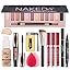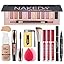 - ALL IN ONE MAKEUP KIT: The all-in-one starter makeup gift set including 12 colors naked shimmer eyeshadow palette, beige foundation, 3 pcs liquid lipsticks, eyebrow soap with brush, winged eyeliner stamp, waterproof mascara, makeup brush, 2 pcs makeup sponge. One set can meet all your needs for daily makeup!