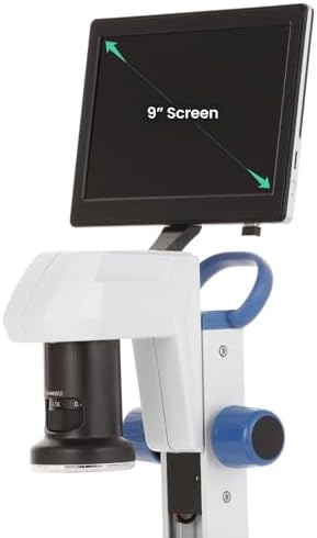 AmScope DM745 Series Digital Microscope for Industrial Inspection - 0.7X-4.5X Magnification - Includes Camera & 9-Inch Screen - Dual LED Lighting - On Track Stand