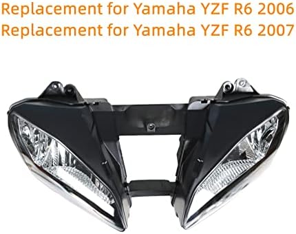 waltyotur Motorcycle Headlight Front Headlamp Replacement for Yamaha YZF R6 Headlight 2006 2007