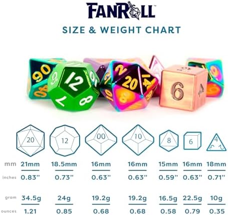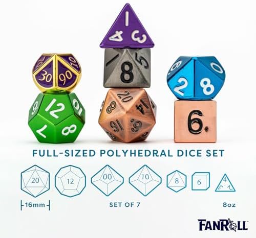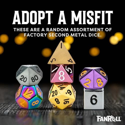 FanRoll Mystery Misfit Metals: Bag of 7 Assorted Polyhedral 16mm Metal Dice