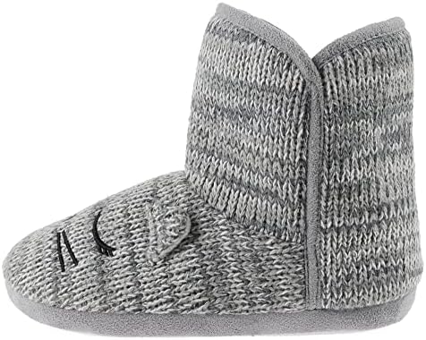 Capelli New York Ladies Knit Sleeping Cat Bootie Slipper with Embroidery, 3D Parts and Fleece Lining