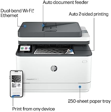 This LaserJet Pro printer is built with powerful productivity features for small teams - fast speeds, built-in security, and cloud connectivity so you can setup and manage it from anywhere.HP Office Laser Multifunction Printers are designed for SMBs and small workteams in larger companies, delivering enhanced productivity, simplified workflows and reduced costs.This printer uses dynamic security, which may be updated periodically by firmware updates. The printer is intended to be used solely with cartridges using an original HP chip. Cartridges using a non-HP chip may not function or may cease to function. More at:www.hp.com/learn/ds Powerful productivity. Support your small workteams with this smart printer, designed for up to 7 users.Print more efficiently. Save time, paper, and costs with fast printing, scanning and auto two-sided printing.Do more in fewer steps. Simple shortcuts allow your employees to complete common tasks with just a touch.Get productivity in the palm of your hand. Print, scan, and save time with Shortcuts from HP Smart. Seamless management. Centralize print management for your enterprise. HP Web JetAdmin makes it easy with its suite of features.Set up your printer quickly wherever work happens. Cloud connectivity makes it easy for your IT team.Access your printers from a single dashboard. Smart Admin guides you through setup and gives IT visibility. Avoid interruptions with Wi-Fi® that intelligently looks for the best connection to stay on-line HP Wolf Pro Security. Get printer security out of the box. Preconfigured settings mean it's ready when you are.Set up and manage your printers from a single dashboard. Smart Admin makes the experience seamless. Add a layer of security. PIN/pull option authenticates your print jobs only when you're present.Set configuration policies and validate settings universally with HP JetAdvantage Security Manager. Hassle-free supplies management with Instant Ink for lasers. Enroll to save on Original HP Toner with Instant Ink. Get toner, delivery and recycling. Never run out of toner with Instant Ink for lasers. Cartridges are delivered automatically and only when you need it.Manage your subscription to get cartridges delivered to multiple locations on a single consolidated bill.With Instant Ink, you get to select the right plans for each of your printers. Change or cancel at any time.