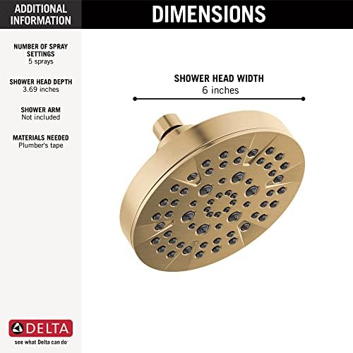 Delta 6-Setting Brushed Gold Shower Head with High Pressure Spray, 6 Inch Round Shower Head, Showerheads, 1.75 GPM Flow Rate, Champagne Bronze 52535-CZ