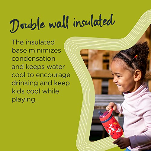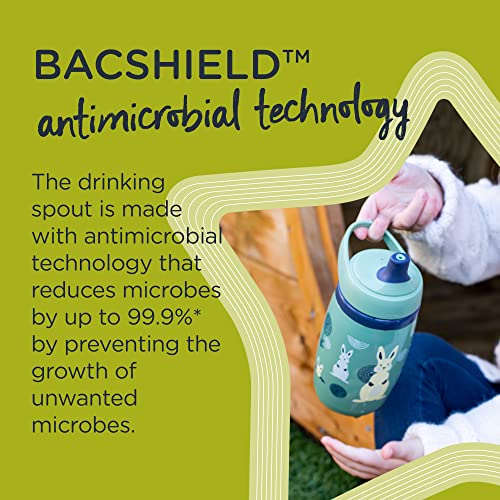 The Insulated Sportee water bottle is the toddler-friendly cup with the big kid look. Little ones can carry their sippy cup on family outings by its easy to grab handle so they can rehydrate as they please--just like mom and dad! The ergonomic design is comfortable for tiny hands, and little ones can stay hydrated longer because of the sports bottle's insulated core that keeps water cool. The resilient bite-resistant spout is extra durable, while the leak-proof spout means less clean ups and more carefree fun and comes with a removable hygiene cover. Featuring INTELLIVALVE™, a unique anti-leak technology which guarantees this insulated water bottle is completely leak-proof as it withstands internal pressure meaning the sippy cup won’t leak even when it is turned upside down or shaken. Our unique valve both seals and regulates the flow of liquid to stop leaks and to ensure easy drinking. With hygiene at the forefront of everyone’s minds our drinking bottles add an extra layer of reassurance as the drinking spout contains BACSHIELD™ antimicrobial technology. BACSHIELD™ is a commonly used silver-ion technology that provides antimicrobial product protection against unwanted microbes, recognized for centuries with no harmful effects. It works by preventing the growth of unwanted microbes that can cause product degradation, discoloration, staining or odor. This is achieved with silver ions mixed in the material on the spout*, preventing microbes from multiplying. All our products are BPA, BPS, PVC, Phthalate and Nitrosamine free. *The antimicrobial technology does not protect the user or others against disease causing organisms. The technology is not a substitute for good hygiene and/or cleaning practices Independent laboratory testing demonstrated a 99.9% reduction in microbes after 24 hours. BACSHIELD™ is tested to ISO 22196:2011 standards.